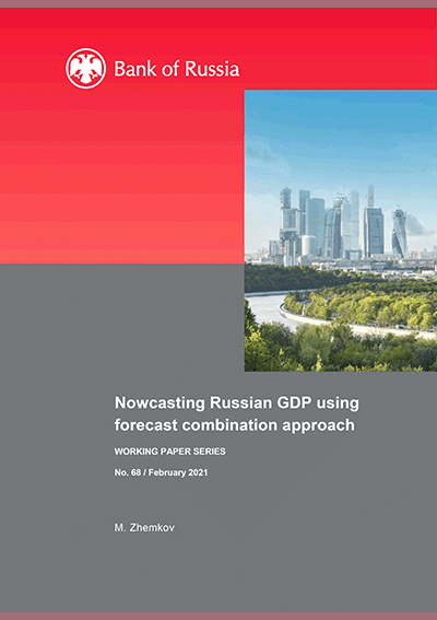 Zhemkov, M. Nowcasting Russian GDP using forecast combination approach / M. Zhemkov; The Central Bank of the Russian Federation, Monetary Policy Department. — Moscow : Bank of Russia, february 2021. — 26 p.: il.. — (Working Paper Series; # 68). — References: p. 25-26.