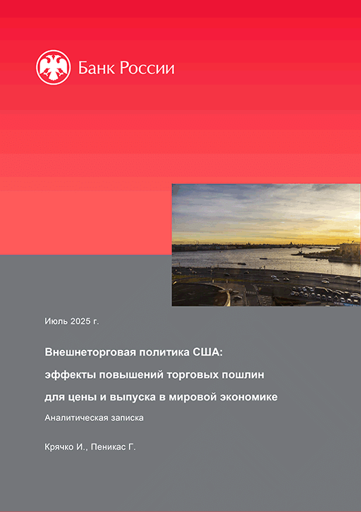 Крячко, И. Внешнеторговая политика США: эффекты повышений торговых пошлин для цены и выпуска в мировой экономике / И. Крячко, Г. Пеникас; Центральный банк Российской Федерации, Департамент исследований и прогнозирования. — Москва : Банк России, июль 2025. — 12 с.: граф., табл.. — (Аналитическая записка).