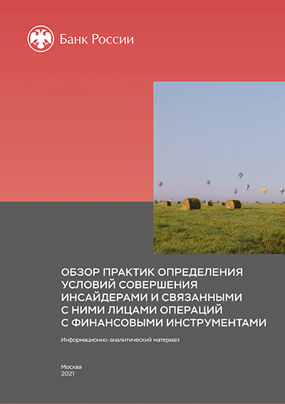 Обзор практик определения условий совершения инсайдерами и связанными с ними лицами операций с финансовыми инструментами : информационно-аналитический материал / Центральный банк Российской Федерации, Департамент противодействия недобросовестным практикам. — Москва : Банк России, 2021. — 10 с.