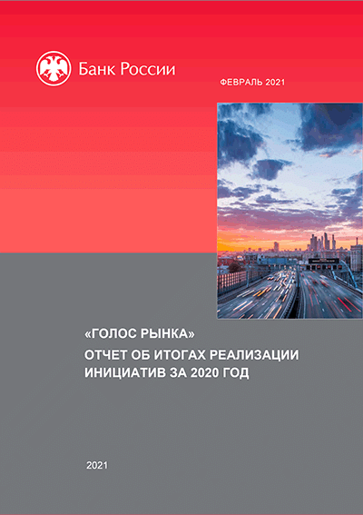 Отчет об итогах реализации инициатив за 2020 год : "голос рынка" / Центральный банк Российской Федерации, Департамент стратегического развития финансового рынка. — Москва : Банк России, февраль 2021. — 20 с.