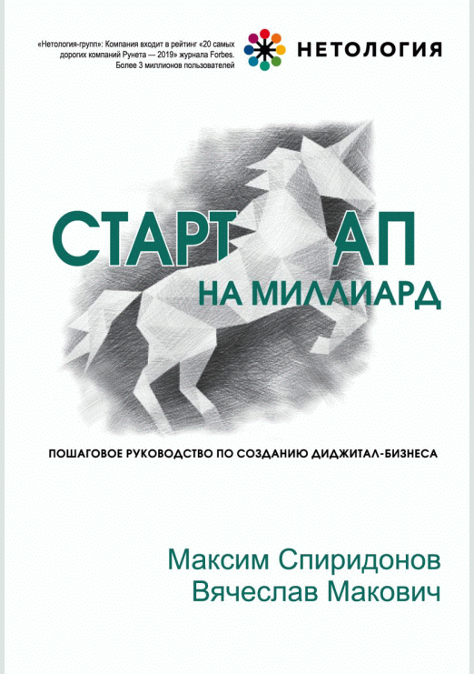 Спиридонов, М.Ю. Стартап на миллиард : пошаговое руководство по созданию диджитал-бизнеса / М. Ю. Спиридонов, В. А. Макович. — Москва : Эксмо, 2019. — 256 с.: граф., табл., ил.. — ISBN 978-5-04-105001-6.