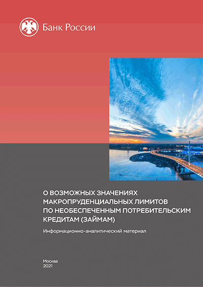 О возможных значениях макропруденциальных лимитов по необеспеченным потребительским кредитам (займам) : информационно-аналитический материал / Центральный банк Российской Федерации, Департамент финансовой стабильности. — Москва : Банк России, 2021. — 7 с.: граф., табл.