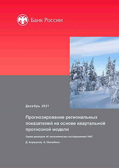 Коршунов, Д. Прогнозирование региональных показателей на основе квартальной прогнозной модели / Д. Коршунов, А. Нелюбина; Центральный банк Российской Федерации, Главное управление по Центральному федеральному округу. — Москва : Банк России, декабрь 2021. — 40 с.: граф., табл.. — (Серия докладов об экономических исследованиях; № 87). — Библиогр.: с. 33-34.