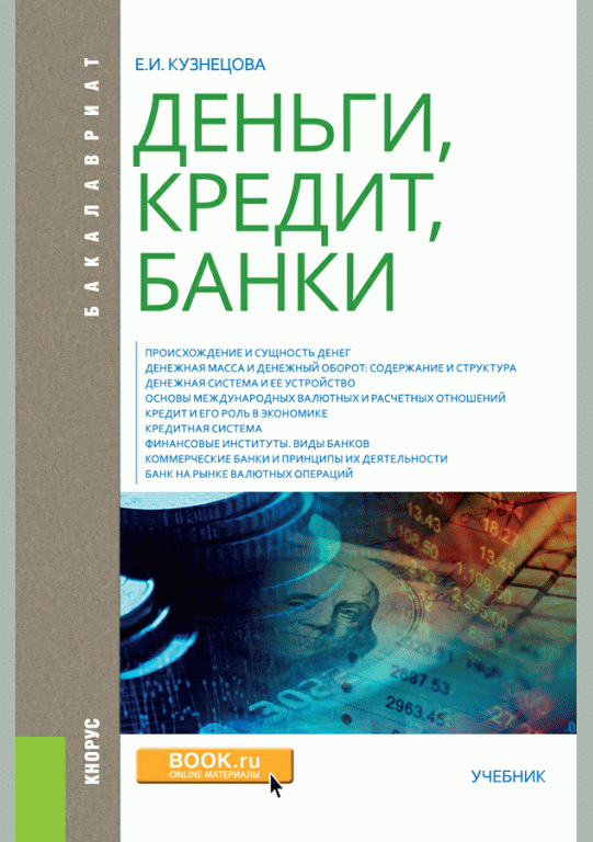 Кузнецова, Е.И. Деньги, кредит, банки : учебник / Е. И. Кузнецова. — Москва : КноРус, 2025. — 306 с.: ил., табл.. — (Бакалавриат). — ISBN 978-5-406-00291-9.