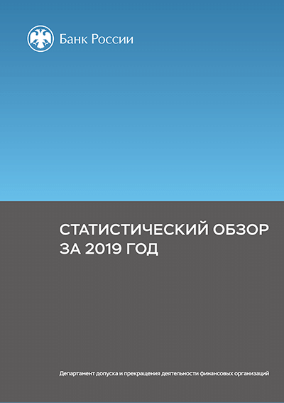 Статистический обзор за 2019 год / Центральный банк Российской Федерации, Департамент допуска и прекращения деятельности финансовых организаций. — Москва : Банк России, [2020]. — 47 с.: граф., табл.