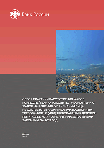 Обзор практики рассмотрения жалоб Комиссией Банка России по рассмотрению жалоб на решения о признании лица не соответствующим квалификационным требованиям и (или) требованиям к деловой репутации, установленным федеральными законами, за 2019 год