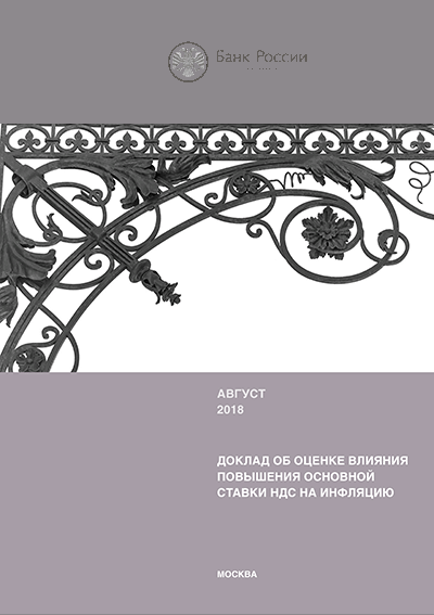 Доклад об оценке влияния повышения основной ставки НДС на инфляцию / Центральный банк Российской Федерации. — Москва : Банк России, август 2018. — 17 с.: граф., табл.