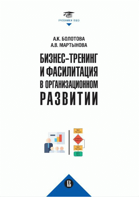 Болотова, А.К. Бизнес-тренинг и фасилитация в организационном развитии / А. К. Болотова, А. В. Мартынова; рецензенты: Т. Ю. Базаров, О. А. Тихомандрицкая. — Москва : Издательский дом Высшей школы экономики, 2025. — 371 с.: табл., ил.. — (Учебники Высшей школы экономики). — Библиогр.: с. 323-332. — ISBN 978-5-7598-4109-8.