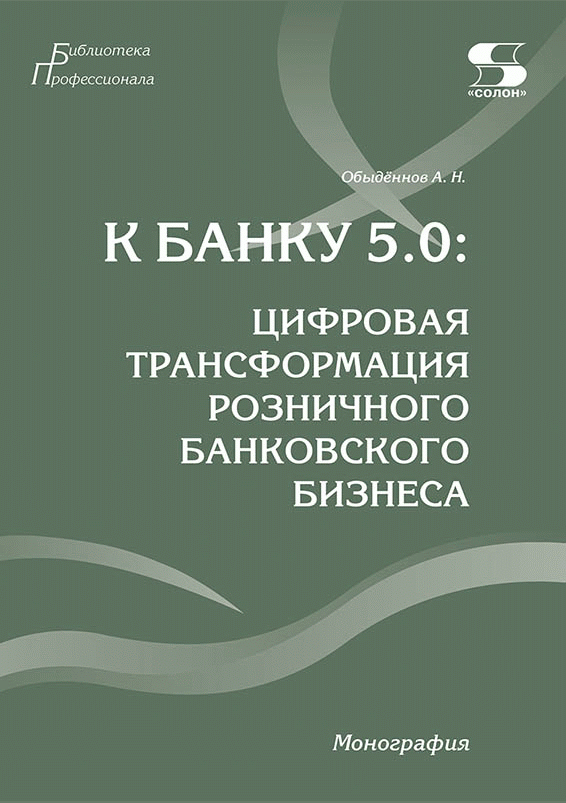 Обыденнов, А.Н. К банку 5.0 : цифровая трансформация розничного банковского бизнеса: монография / А. Н. Обыденнов. — Москва : Солон-Пресс, 2025. — 272 с.: граф., табл.. — (Библиотека профессионала). — Библиогр.: с. 235-271. — ISBN 978-5-600-04556-9.