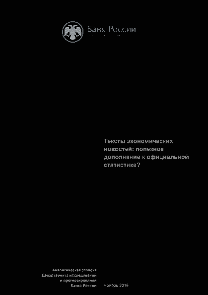 Яковлева, К.В. Тексты экономических новостей : полезное дополнение к официальной статистике? / К. В. Яковлева, А. С. Поршаков; Центральный банк Российской Федерации, Департамент исследований и прогнозирования. — Москва : Банк России, ноябрь 2018. — 17 с.: граф., табл.. — (Аналитическая записка). — Библиогр.: с. 16-17.