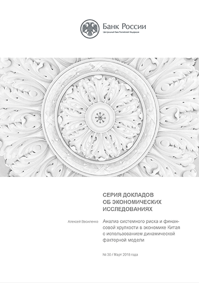 Василенко, А. Анализ системного риска и финансовой хрупкости в экономике Китая с использованием динамической факторной модели / А. Василенко; Центральный банк Российской Федерации, Департамент исследований и прогнозирования. — Москва : Банк России, март 2018. — 17 с.: табл., граф.. — (Серия докладов об экономических исследованиях; № 30). — Библиогр.: с. 15-16.