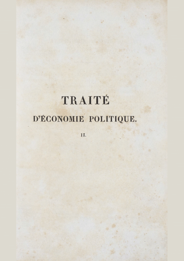 Say, J.-B. Traité d'économie politique, ou simple exposition de la manière dont se forment, se distribuent et se consomment les richesses. Tome second / J.-B. Say. — Cinquième Edition. — Paris : Chez Rapilly, Libraire, 1826. — iij, 408 p.. — (в пер.) : 25.00 р.
