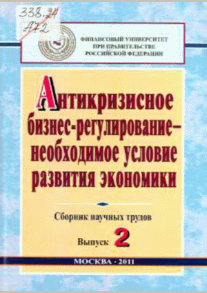 - 1. Антикризисное бизнес-регулирование - необходимое условие развития экономики / Финансовый университет при Правительстве РФ. — Москва : Финансовый университет, 2011. — 136 с.. — ISBN 978-5-7942-0844-3.