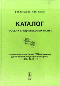 Клещинов, В.Н. Каталог русских средневековых монет с правления царя Ивана IV Васильевича до шведской оккупации Новгорода (1533-1617 гг.) / В.Н. Клещинов, И.В. Гришин. — Изд. 2-е, стереотип.. — Москва : ЛЕНАНД, 2007. — 88 с.: ил. — . Текст на рус. и англ. яз.. — 120.00 р.