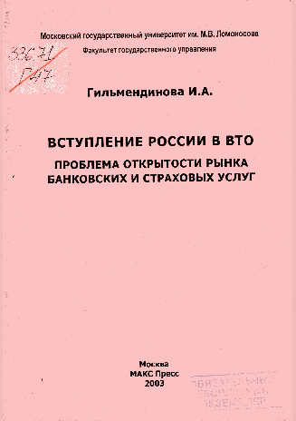 Гильмендинова, И.А. Вступление России в ВТО: проблема открытости рынка банковских и страховых услуг / И. А. Гильмендинова. — Москва : МАКС Пресс, 2003. — 28 с.. — Библиогр.: с. 24. — 200.00 р.