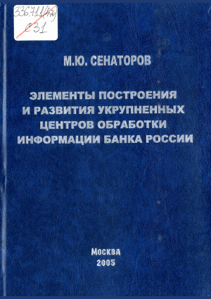 Сенаторов, М.Ю. Элементы построения и развития укрупненных центров обработки информации Банка России / М. Ю. Сенаторов; Российская академия ракетных и артиллерийских наук. — Москва : Хоружевский, 2005. — 292 с.: ил.. — Библиогр.: с. 288-290. — ISBN 5-98625-038-9 : 200.00 р.
