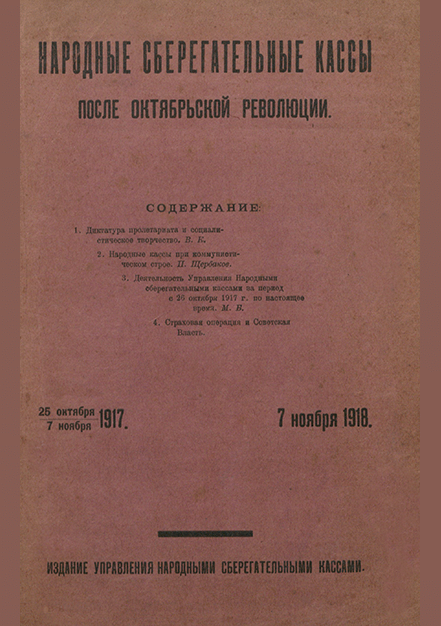 Народные сберегательные кассы после Октябрьской революции. — Москва : Издание Управления государственными сберегательными кассами, 1918. — 28 с.
