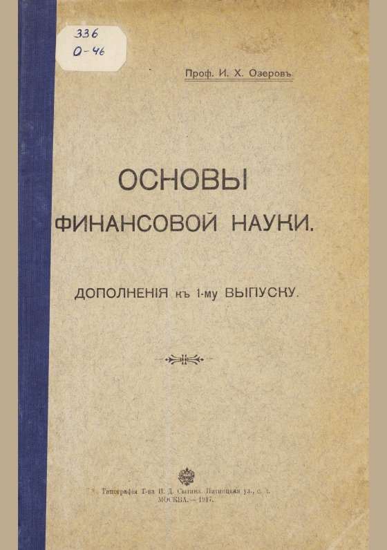 - 6. Озеров, И.Х. Основы финансовой науки / И.Х. Озеров. — Москва : Типография Т-ва И.Д. Сытина, 1908. — 530, V с.