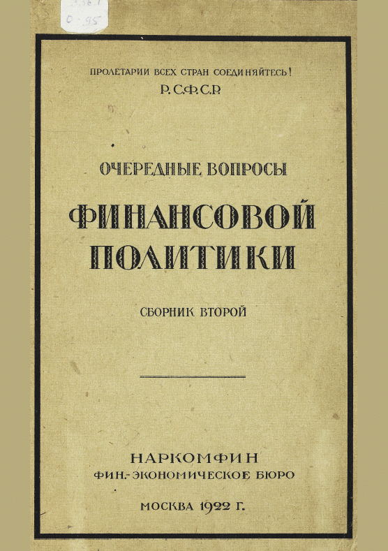 Очередные вопросы финансовой политики : Сборник статей, Вып. II. — Москва : Изд. Фин.-экон. Бюро, 1922. — 176 с.