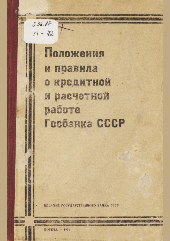 Положения и правила о кредитной и расчетной работе Госбанка СССР / Государственный банк СССР, Правление. — Москва : Издание Госбанка СССР, 1931. — 87 с.