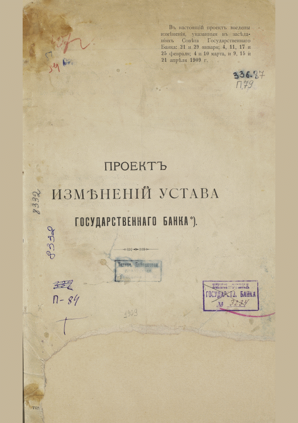 Проект изменений устава Государственного Банка. — Б.м., 1909. — 155 с.