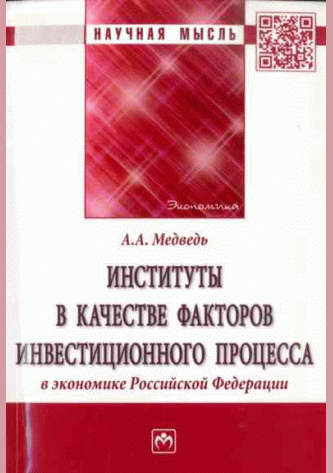 Медведь, А.А. Институты в качестве факторов инвестиционного процесса в экономике Российской Федерации : монография / А. А. Медведь. — Москва : Инфра-М, 2018. — 114 с.. — (Научная мысль). — Библиогр.: с. 95-113. — ISBN 978-5-16-013460-4 : 439.00 р.