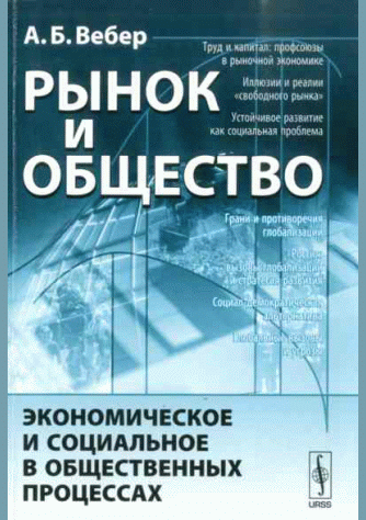 Вебер, А.Б. Рынок и общество : экономическое и социальное в общественных процессах / А. Б. Вебер; Институт социологии. — Изд. стереотип.. — Москва : URSS, 2018. — 462 с.. — Алф. указ.: с. 450-454. — ISBN 978-5-397-05933-6 : 875.00 р.