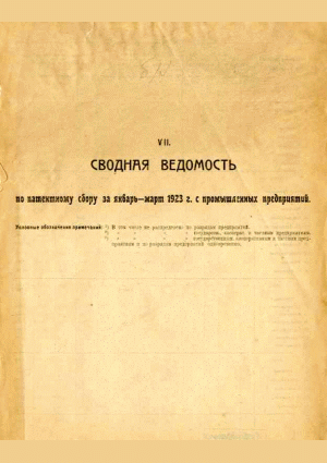 Сводная ведомость по обложению торгово-промышленных предприятий уравнительным сбором в порядке Временных Правил 18 января 1923 года за январь - март 1923 г.. Вып. IV-X. — Б. м., 1923. — 218 с.