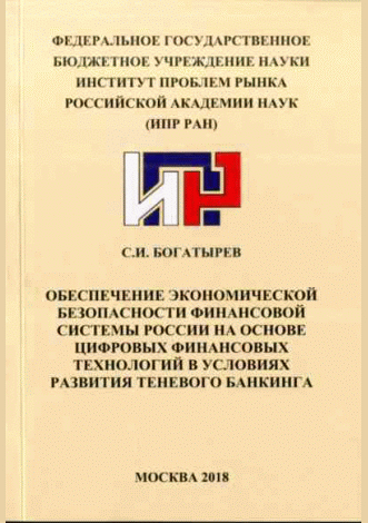Богатырев, С.И. Обеспечение экономической безопасности финансовой системы России на основе цифровых финансовых технологий в условиях развития теневого банкинга / С. И. Богатырев; Институт проблем рынка РАН. — Москва : ИПР РАН, 2018. — 210 с.. — Библиогр.: с. 190-208. — ISBN 978-5-6041038-4-5.