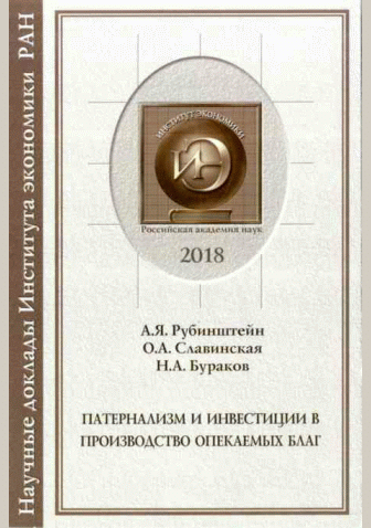 Рубинштейн, А.Я. Патернализм и инвестиции в производство опекаемых благ / А. Я. Рубинштейн, О. А. Славинская, Н. А. Бураков; Институт экономики Российской академии наук. — Москва : Институт экономики РАН, 2018. — 51 с.: граф., табл.. — (Научные доклады Института экономики РАН). — Библиогр.: с. 48-51.