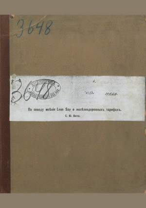 Витте, С.Ю. По поводу мнения Leon Say о железнодорожных тарифах / С. Ю. Витте. — Киев : Типография И.Н. Кушнерева и К., 1883. — 5 с.. — . Напечатано по старорусской орфографии.