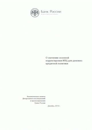 Поршаков, А.С. О значении сезонной корректировки ИПЦ для денежно-кредитной политики / А. С. Поршаков, А. К. Сапова, Д. Н. Чернядьев; Банк России, Департамент исследований и прогнозирования. — Электрон. текстовые дан.. — Москва : Банк России, 2018. — 14 с.. — (Аналитическая записка; декабрь 2018).