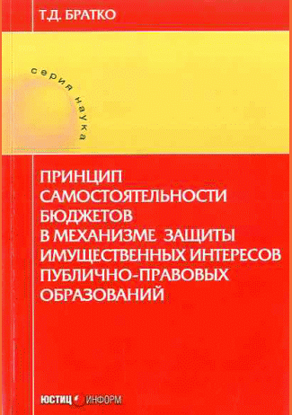 Братко, Т.Д. Принцип самостоятельности бюджетов в механизме защиты имущественных интересов публично-правовых образований, The fiscal autonomy principle in the protection mechanism of public property interest / Т. Д. Братко. — Москва : Юстицинформ, 2018. — 488 с.. — (Наука). — Слов.терминов: с. 269-273. — ISBN 978-5-7205-1401-3 : 150.00 р.