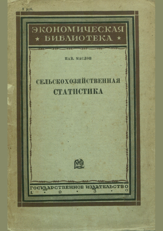 Маслов, П. Сельскохозяйственная статистика. Ч. 1. Массовое наблюдение / П. Маслов. — Москва : Госиздат, 1930. — 302 с.. — (Экономическая библиотека). — 15.00 р.