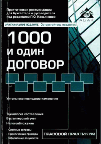 1000 и один договор : технология составления : бухгалтерский учет : налогообложение : сложные вопросы : практические примеры : оформление документов : практические рекомендации для бухгалтера и руководителя : учтены все последние изменения в законодательстве / Ассоциация бухгалтеров, аудиторов и консультантов; редактор Г. Ю. Касьянова. — Изд. 16-е, перераб. и доп.. — Москва : АБАК, 2019. — 492 с.: табл.. — ISBN 978-5-9748-0575-2 : 100.00 р.