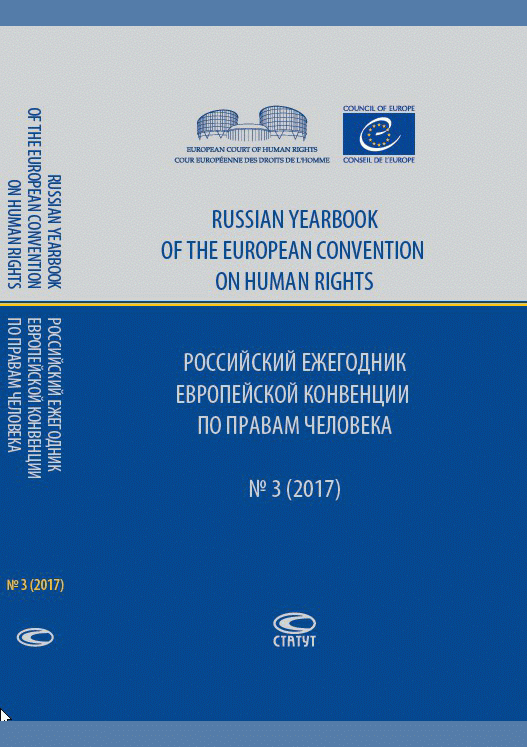 Российский ежегодник Европейской конвенции по правам человека, Russian Yearbook of the European Convention on Human Rights. № 3 (2017). Имплементация Конвенции по правам человека в национальное право : [сборник статей]. — Посвящается 20-летию членства России в Совете Европы. — Электрон. текстовые дан.. — Москва : Статут, 2017. — 672 с.. — ISBN 978-5-8354-1374-4.