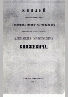 Юбилей пятидесятилетней службы господина министра финансов действительного тайного советника Александра Максимовича Княжевича. — Санкт-Петербург : Типогр. Н. Греча, 1861. — 60 с.