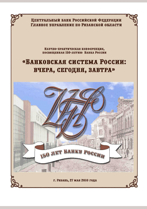 Банковская система России: вчера, сегодня, завтра : научно-практическая конференция, посвященная 150-летию Банка России / Центральный банк Российской Федерации, Главное управление по Рязанской области. — Рязань, 2010. — 174 с.. — (К 150-летию Банка России). — 100.00 р.