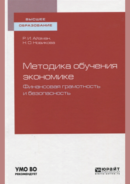 Айзман, Р.И. Методика обучения экономике : финансовая грамотность и безопасность: учебное пособие для вузов / Р. И. Айзман, Н. О. Новикова. — Москва : Юрайт, 2020. — 215 с.: ил.. — (Высшее образование). — Библиогр.: с. 207-214. — ISBN 978-5-534-11943-5 : 839.00 р.