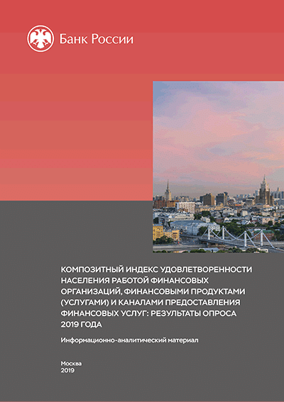 Композитный индекс удовлетворенности населения работой финансовых организаций, финансовыми продуктами (услугами) и каналами предоставления финансовых услуг: результаты опроса 2019 года : информационно-аналитический материал / Центральный банк Российской Федерации. — Москва : Банк России, 2019. — 11 с.: табл.