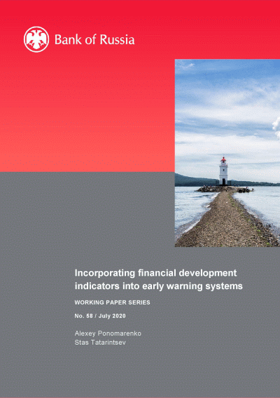 Ponomarenko, A. Incorporating financial development indicators into early warning systems / A. Ponomarenko, S. Tatarintsev; The Central Bank of Russian Federation. — Moscow : Bank of Russia, 2020. — 22 p.: il.. — (Working paper series; 58, july). — References: p. 16-18.