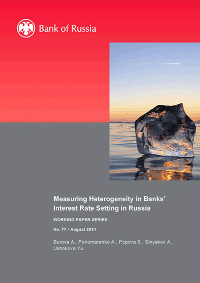 Measuring heterogeneity in banks' interest rate setting in Russia / A. Burova, A. Ponomarenko, S. Popova [et al.]; The Central Bank of Russian Federation. — Moscow : Bank of Russia, 2021. — 39 p.: il.. — (Working paper series; 77, august). — Annexes: p. 36-37.
