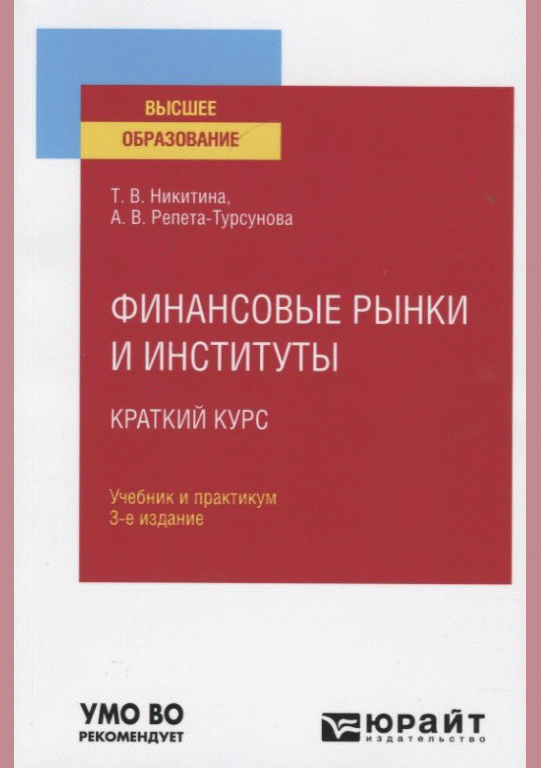 Никитина, Т.В. Финансовые рынки и институты : краткий курс : учебник и практикум для вузов / Т. В. Никитина, А. В. Репета-Турсунова. — 3-е изд., испр. и доп.. — Москва : Юрайт, 2020. — 97 с.: ил.. — (Высшее образование). — ISBN 978-5-534-12443-9.