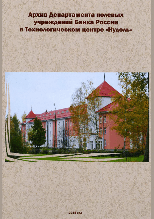Архив Департамента полевых учреждений Банка России в Технологическом центре "Нудоль" / Центральный банк Российской Федерации, Департамент полевых учреждений. — Б. м., 2014. — 14 с.: цв. ил.