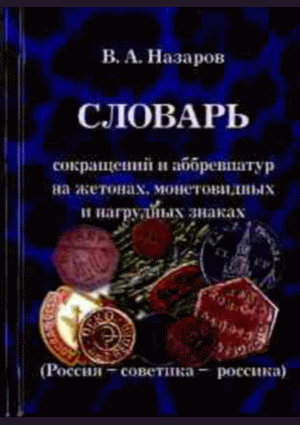 Назаров, В.А. Словарь сокращений и аббревиатур на жетонах, монетовидных и нагрудных знаках (Россия - советика - россика). Вып. 1 : более 3600 позиций / В. А. Назаров. — Ростов-на-Дону : Донской издательский дом, 2015. — 176 с.. — 945.00 р.