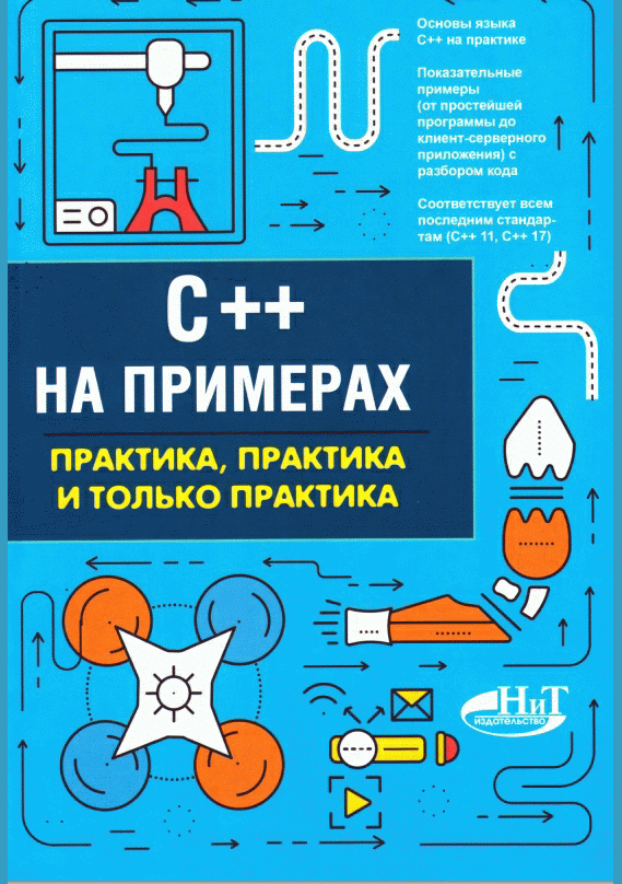 Эта книга является превосходным учебным пособием для изучения языка программирования C++ на примерах. В книге рассмотрена базовая теоретическая часть языка C++, позволяющая ориентироваться в языке и создавать свои программы: типы, функции, операторы, логический конструкции, массивы, указатели, структуры, работа с файлами, объектно-ориентированное программирование. Отдельное внимание уделено программированию различных алгоритмов. В книге используется большое количество примеров с подробным анализом кода: от простых приложений для вывода текста на экран и проведения вычислений до клиент-серверного приложения. Будет полезна как начинающим программистам, студентам, так и всем, кто хочет быстро начать программировать на C++.
