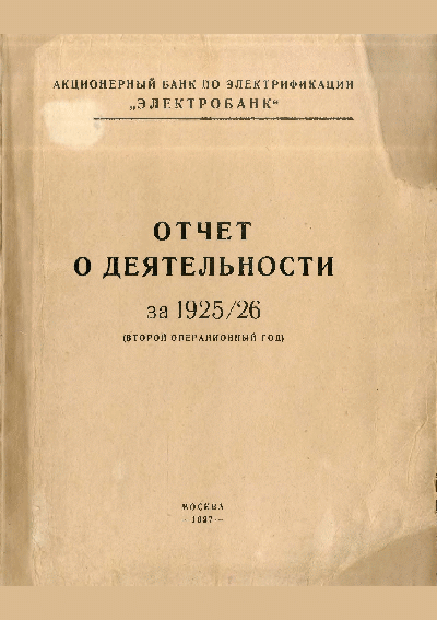Отчет о деятельности за 1925/1926. Второй операционный год. — М., 1927. — 39 с.