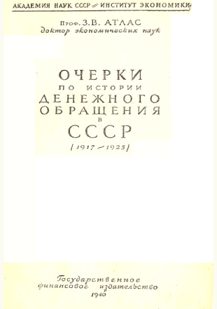Атлас, З.В. Очерки по истории денежного обращения в СССР (1917-1925) / З.В. Атлас; АН СССР, Ин-т Экономики. — Москва : Госфиниздат, 1940. — 245 с.