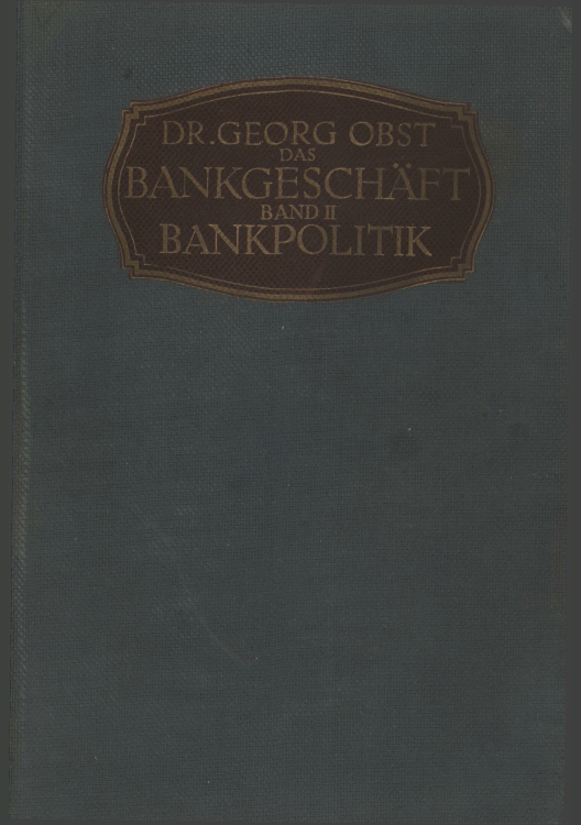 Obst, G. Das Bankgeschaft. II. Band. Bankpolitik / G. Obst. — 8. Auflage, Neudruck der vollstandig umgearbeiteten 6. Auflage (erschienen 1923). — Stuttgart : C.E. Poeschel Verlag, 1924. — XI, 619 S.. — Alphabetisches Sachregister: S.613-619. — (в пер.) : 3.00 р.