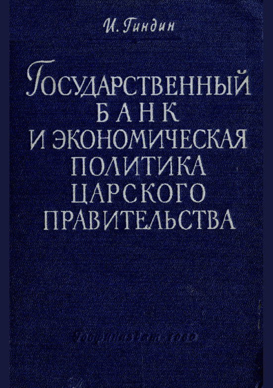 Гиндин, И.Ф. Государственный банк и экономическая политика царского правительства. 1861-1892 гг. / И. Ф. Гиндин; Академия наук СССР, Институт истории. — Москва : Государственное финансовое издательство СССР, 1960. — 415 с.